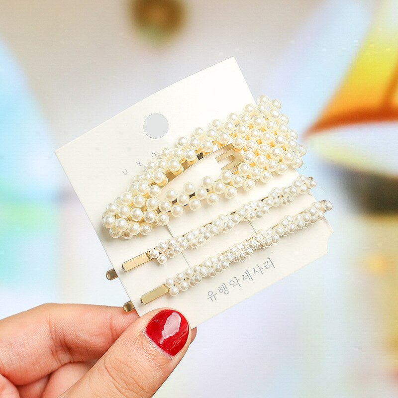 1 conjunto coréia imitado pérola grânulos de cabelo clipes para mulheres doce menina barrettes hairpins acessórios para cabelo artesanal headwear hairgrip