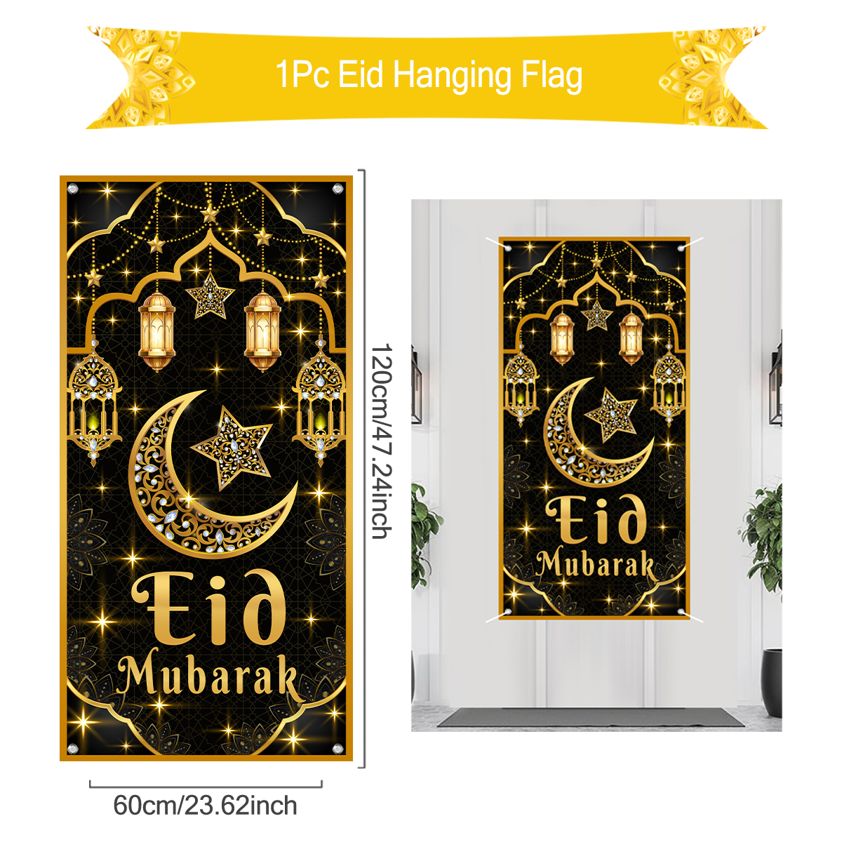 Eid mubarak pendurado bandeira ramadan decoração para casa 2025 ramadan kareem islâmico muçulmano fontes de festa eid al adha presentes