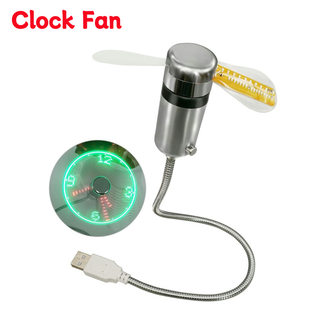 Ventiladores de relógio com display de temperatura e tempo, ventilador de relógio led dc 5v, mini ventilador piscante de resfriamento, alimentado por usb, dispositivos portáteis, exibição em tempo real